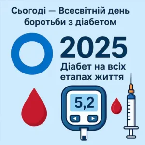 Сьогодні — Всесвітній день боротьби з діабетом: тема 2025 — «Діабет на всіх етапах життя» Сьогодні, 14 листопада, відзначається Всесвітній